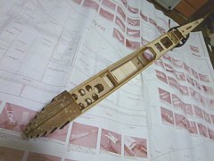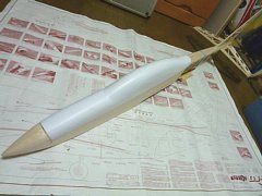 | 第二弾 胴体全部のカバー部をバルサ材に変更。胴枠は3mm、外皮は2mmバルサを使用して空野式モノコック工法で製作。 サンディング前で35g、元のプラスチック部品が70g弱なので35gの軽量化が可能。 しかし、この大きさで半割構造なので思ったより剛性が低く、特に頻繁に開閉する部品なので今回は不採用(残念)。 元のプラスチック部品を使うかな〜他の方法も要検討。(2012年2月21日) ![]() ![]() ![]() |