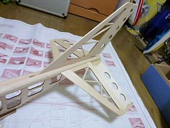 | 軽量化 まずは胴体後部のカバー(26g)をバルサ製に交換。バルサブロックをくり抜いて約13gになった。 これを胴体に接着すると捻れ剛性が格段にアップ、軽量化よりも剛性アップの効果が期待できる。 ヘリのテールパイプのような支持ステーは不要かも。(2012年2月18日) ![]() ![]() |