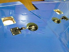 | 前輪の引込脚 前輪はサーボレス引込脚でラダー連動式。実際に組み込んでみると色々と干渉し上手く引き込めない・・・。 ラダーサーボへのリンケージが引き込みを邪魔するのが問題、最適位置を見つけるまで数時間悪銭苦闘。 やっと上手く引き込むようになったが胴体には大きな開口が・・・バルサを張り替えるかプラ板で隠すかの対策が必要。 この引込脚ユニットはHK製、応用例としてローテーション式が記載されている。30クラスのコルセアに使えるかも。 ![]() ![]() |