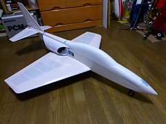 | 機体コンセプト 今回は「取り扱いが容易で軽快に飛ぶジェットスタイルのスポーツ機」を目指したいと思っている。 まず、一人で飛ばせること。駐機場からタキシングで滑走路までたどり着いて、そこから自力で離陸。 上空ではロール、ループ、キューバンエイト程度は軽々こなす。更に、低速飛行が可能でゆっくりと着陸すること。 引込脚の耐久性も必須要件。 機体仕様では1600g程度になっている。この機体を電動化した(少し昔の)記事を見つけた。リポ6セルで1600g程度では仕上がる様子。 今回の機体は1500gを目指したい。まず胴体上半分のプラスチック部品をバルサで作り直し。空野式モノコック工法なら簡単。 リポ電池は2600mAhの6セルとし、サーボは20g以下の実績のあるものを選択。フイルムはオラライトとし、重量物の配置を考えてノーバラストとする・・・等々、軽量化のネタはたくさんあります。 こんなことを考えていくのは楽しいです。(2012年1月14日) |