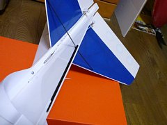 | フイルム貼り フイルムはオラライトのホワイトとブルーを使用。ホワイトは思ったよりも透けるので、塗装をする必要がある。但しクリヤホワイトよりは白いです。 フイルム貼りを終えて尾翼を仮付けすると胴体は意外とかさばります。保管場所が・・・。 これでメカ類の固定と配線作業へ進めます。(2012年3月10日) ![]() ![]() ![]() |