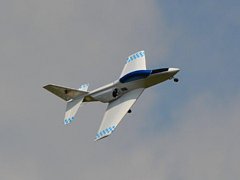 | その日がやってきました 熊本甲佐の第6回グリーングラスE−JETラリーin九州でお披露目して初飛行に臨むことになった。 皆さんからは大丈夫と励ましをもらい、まずは地上でタキシング。脚が弱いかなと心配でしたが、意外と大丈夫。ステアリングも効きます。 リポ電池を再充電して、全体写真を撮ってから初飛行へ。今回はOシマさんがサポートしてくれました。 スロットルハイで走り出して速度が上がったところでエレベータを引くと離陸〜お〜浮くじゃん、舵も効くし・・・飛びました。 上空でトリムを合わせますが、エルロンを2コマ調整しただけOK。普通に飛びます。 ダクトユニットが露出しているので少し騒々しいですが、90mmダクトなので迫力があって良い感じです。 ![]() ![]() ![]() |