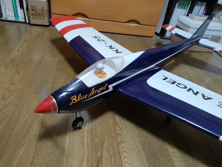 | 経緯 先日、市内にお住まい方から手持ちの機体を差し上げますとのメールがあった。面識のない方でHPを見て連絡を頂いた。完成後に未飛行のまま手元においていたが処分するのも忍びないので・・・という主旨。 そんな訳で2機を頂いた。一機は仲間にお願いして飛ばしてもらうことで折り合いがついた。 残りがこのブルーエンゼル20、絹張りの気合の入った機体。保存状態が良かったようで絹の劣化なし。電動化して上空にあげることにした。 エンジンマウントを改造してモータを搭載することになるが、機首部が狭いの工夫が必要。サーボは未搭載なので、ここは小型サーボの搭載が容易。 Outerzoneに図面があったのでダウンロード。これで構造を理解できるるので改造の方針が立てやすい。重心位置も分かった。 全備重量1400g程度、モータ、ペラ、リポ電池をどうするか、思案中。(2022年9月25日) |
