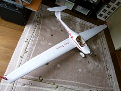 リトルホーク号が完成、初飛行が楽しみです。図面を頼りに自作するのは楽しいものです。先日、小型ヘリ「solo maxx revolution」を入手、初めてのフライバーレス、ブラシモータですが手持ちの送信機が使用できるので調整が容易。部屋の中はもちろん、屋外でも良く飛びます。壊れ難いのが売りで何度か転倒しましたが無傷。良く売れるはずです。近いうちの背面してみます。 製作テーマ、次はゴム動力機をRC化、その後にモータグライダ「アリゼ」に着手する予定。しばらくは楽しめます。 実はお気に入りの「アーバンXC」、先日ごくらくトンボさんの所に嫁いでいきました。・・・なもんで「アルゼ」の完成が急がれます。今年中には飛び立つかな〜。 |