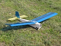 大阪在住の方からレポートを頂きました。嬉しいですね〜(原文のまま) ラジコン技術のデータベース、ありがとうございました。データベースにスカイパンダの製作記事があり、それに触発されて2割縮小したスカイブー(Sky Booh←私が勝手につけた名前)を製作しました。 無論、著者(館林氏)のポリシーに共感したのも動機の一因です。縮小版を製作したのは、私が住んでいる近くに狭い河川敷しか無く、この場所に適応した機体が市販キットにはありません。自作するしかないと前から思っていました。 電池込で310gとなり、翼面荷重は15.5g/du。かなり軽量に仕上がりました。デザイン的にはスカイパンダを2割程縮小して胴体の形状は作りやすさを優先して直線を多用しました。 初飛行は4月16日(火)。最初はパワーに不安で3セルで飛ばしましたが、軽量なせいか垂直上昇に近いくらいの急角度で上昇しました。その後はスロットルをオフにしてグライダーのように滑空。長いときで15分飛行。もっと長く滞空できますが、こちらが疲れてくるので適宜に着陸させます。 後で、2セルで飛ばしましたがこれでも充分です。この機体ならノンビリと飛ばすことができ、癒し系の機体としてピッタリではないかと思います。 |