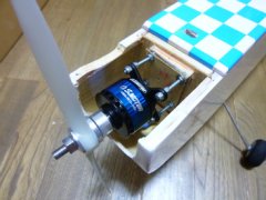 | 顛末 先日製作を手伝ったSuper Dimona 2400、初飛行も担当、結果は剛性不足で危険なので部屋の飾りにしてもらうことした。 絶対的に主翼の剛性不足で、飛行中に翼端が上下方向に撓むだけでなく捻れ方向にも変形している様子。2度飛行して幸い無傷で帰還したがいずれコントロール不能で墜落する確率大、酷い商品でした。 で、ご本人はカルマート1600を電動化して飛ばす気満々。70クラスのモータ/アンプ/リポ電池を準備されましたが、大は小を兼ねるのは難しく、搭載スペースと重心の問題有り。 今回も私の所で仕上げ、アンプ(フタバ110A)は胴体下部に固定、リポ電池6セル5000mAhは700g超える重さで重心合わせが難しく、まずは私の手元にある6セル2600mAhで飛ばしてみることにした。 OSモータ(OMA5020−490)は重量350gでしっかりした作り。部屋で回してみるとトルクフルで静かなモータという印象です。カルマートは実績があるので今回は期待できます。オーバーパワーで推力は重量の2倍、殆ど中スロットルで飛ばすことになりそうです。 ![]() ![]() |