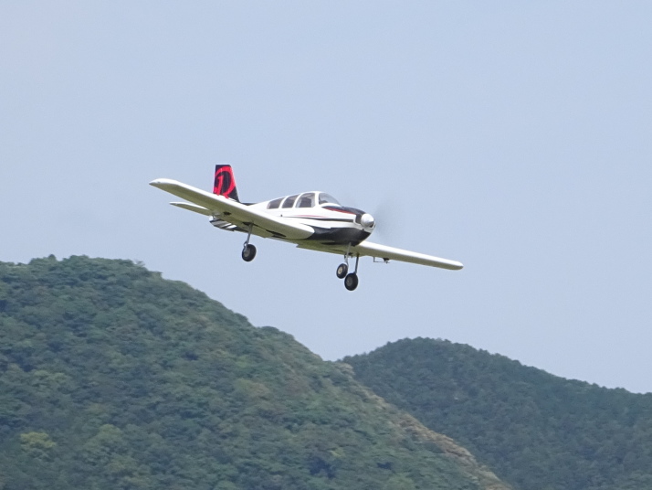 愛知がスパッツをつけて飛行、やっぱりこれがないと愛知らしくないです。前回着陸時に速度を落としすぎて失速した経験を生かして見事に着陸。