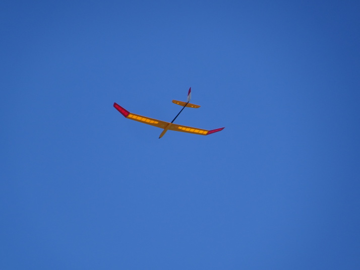 超久しぶりにミニモアを飛ばした。サーマルも風もなく上がって降りてくるだけだが優雅な飛行は味がある。