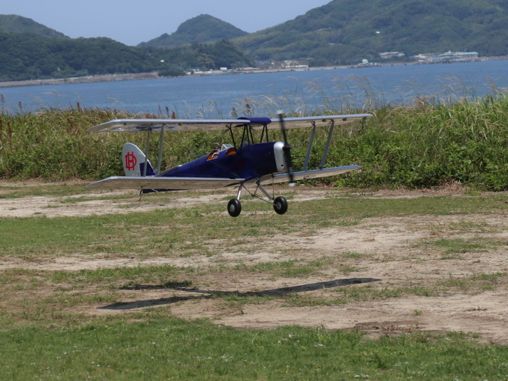 4~5mの風の中、萱場号は安定の飛行。ミニモア(ミニ)には少し強い風であったが安定して優雅に飛行、スケール感十分で、飛行中は意外に大きく見えた。