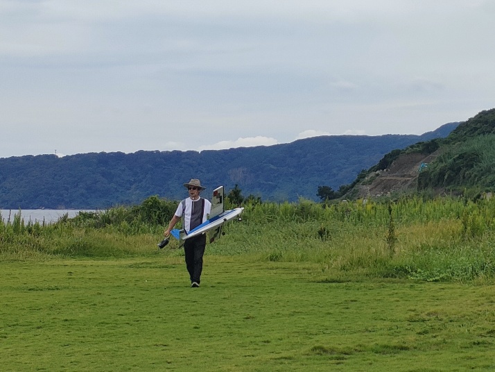 無事に進空。癖のない機体で飛ばし易いようでご本人も満足。このキットはS師匠から譲りうけたもの。本日はS師匠もおられたので良い報告ができた。