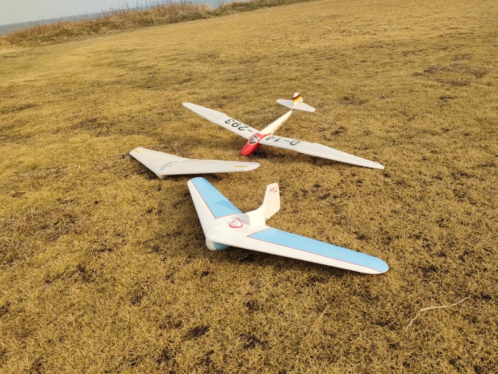 結局、風は弱く、電動飛行機でも楽しめた。南風が入るのでグライダーは浮かなかったのは残念。